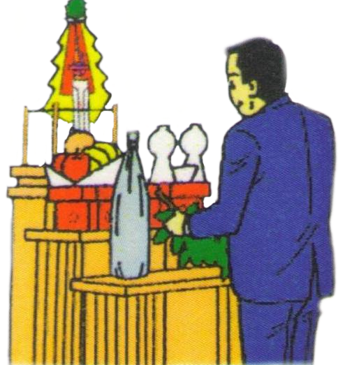 神様にお供え物をします。
