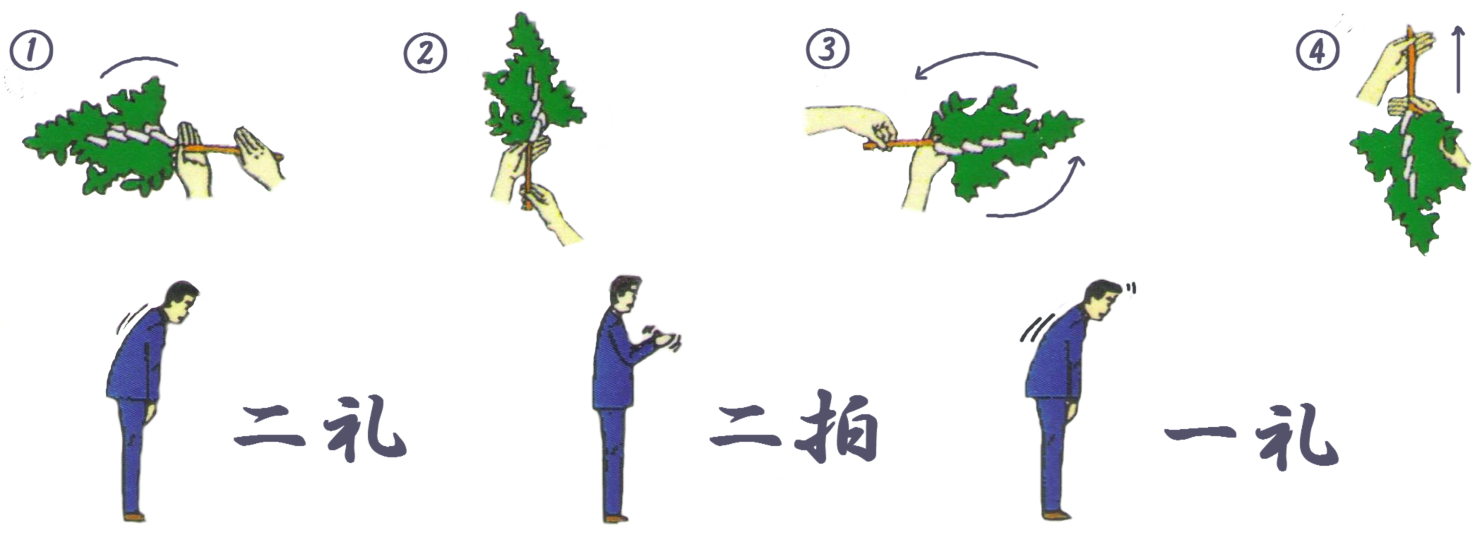 神籬(ひもろぎ)に神様をお迎えする行事です。深い礼を行う。