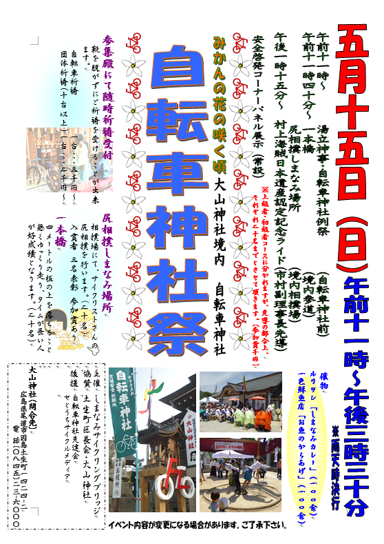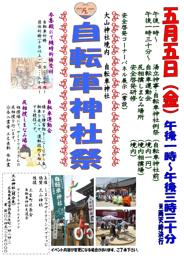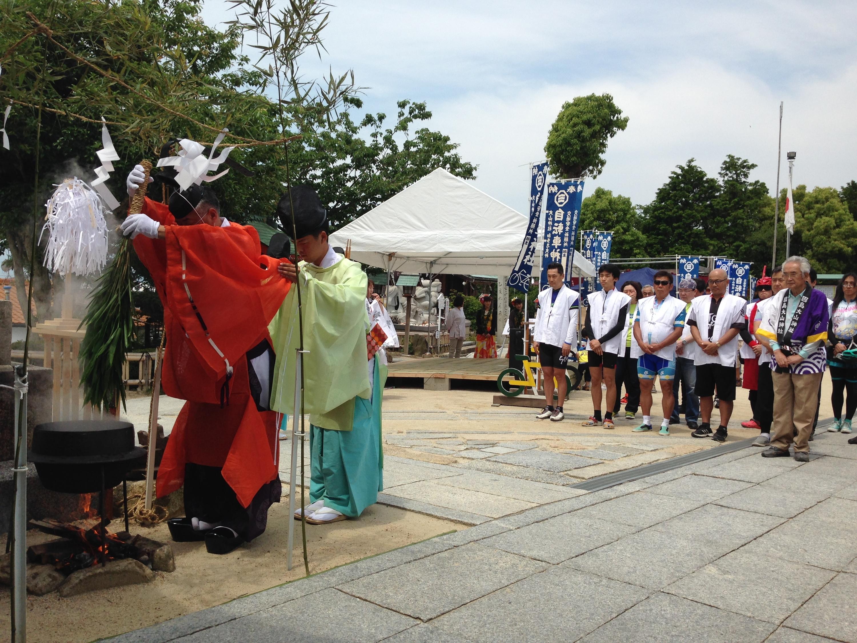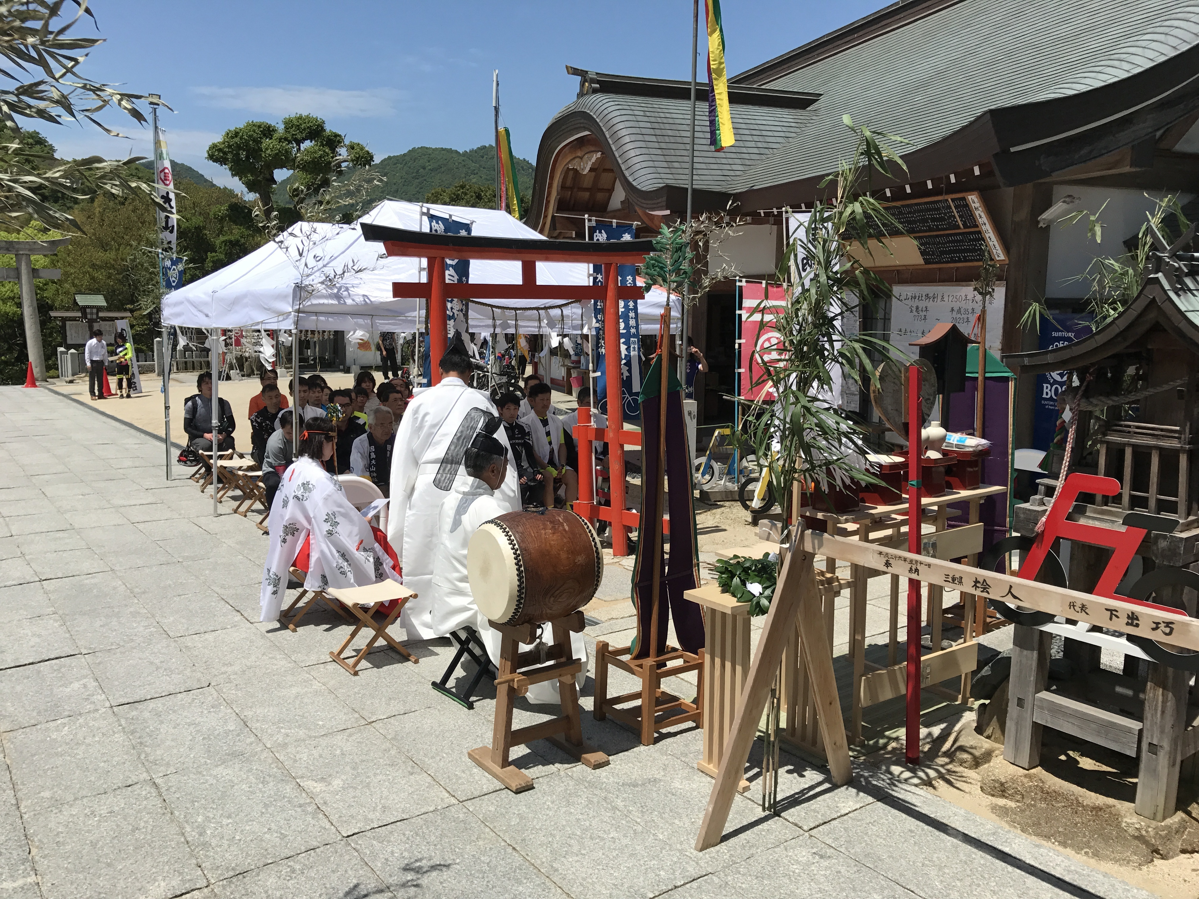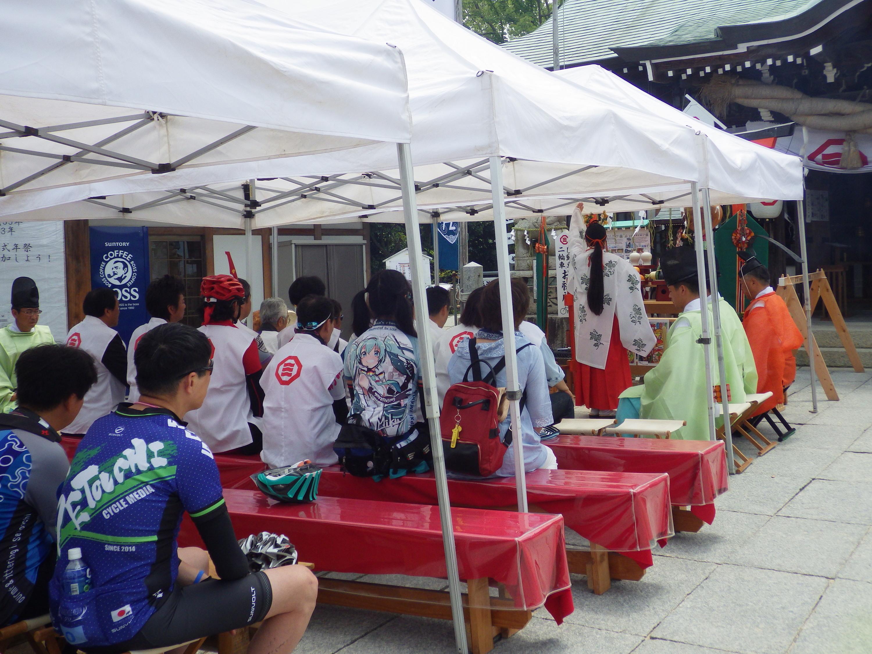 神事では、湯立神事を行い、祝詞の中で、サイクリストさんの安全走行のご祈念を和多志大神様にお伝え致します。