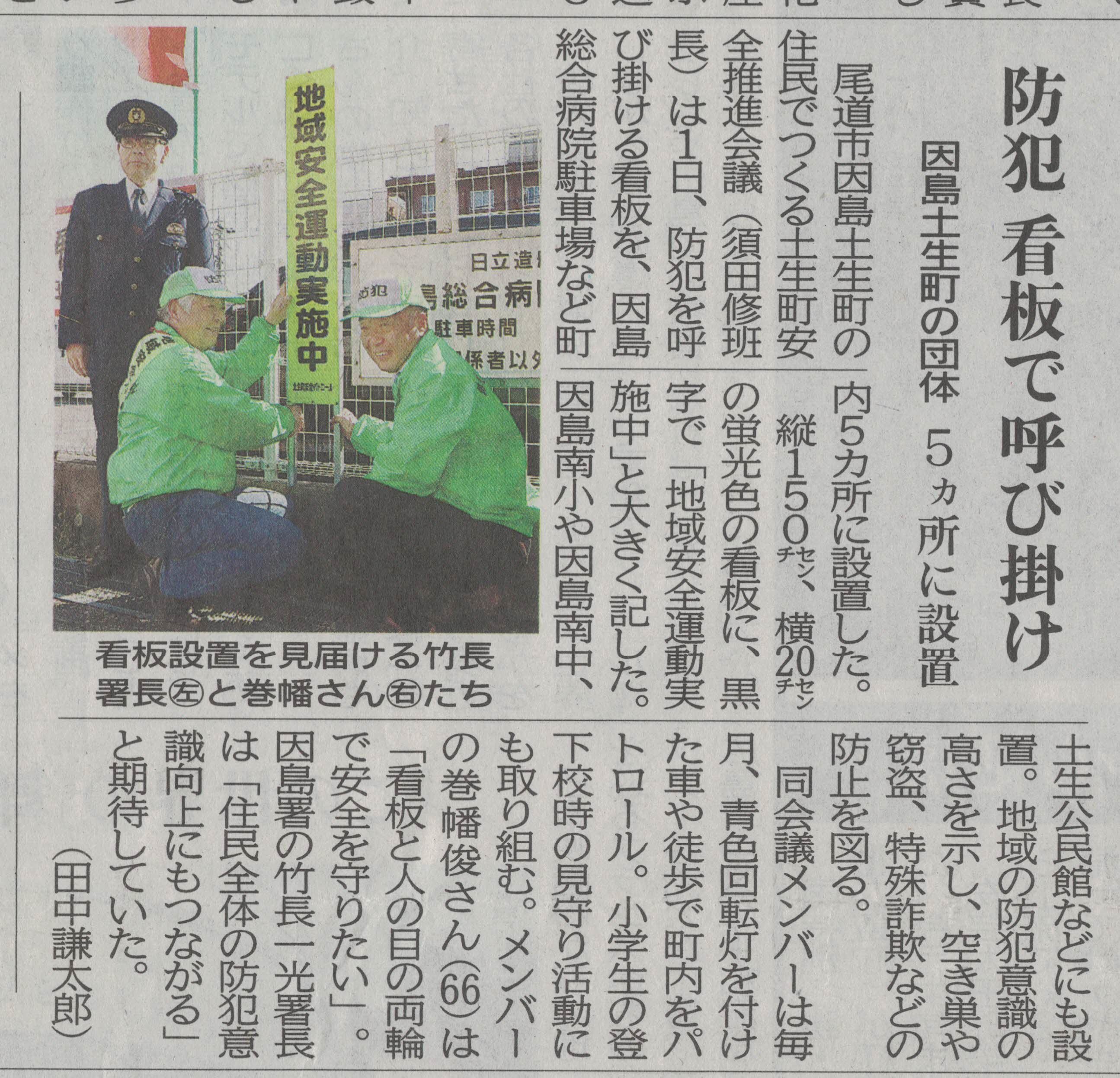 H29.11/2 地域安全運動実施看板を設置(中国新聞)
