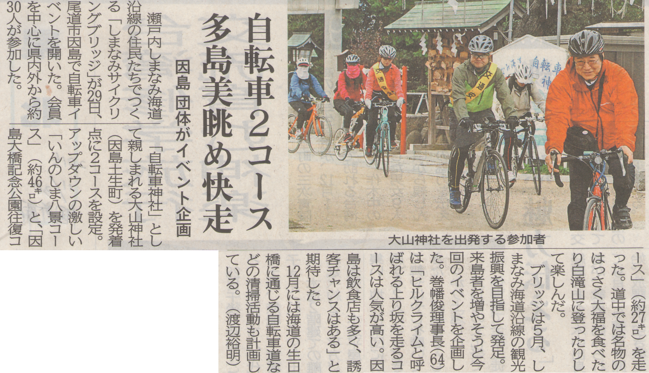 サイクリングの町つくり・因島サイクルツーリズム振興協議会支援