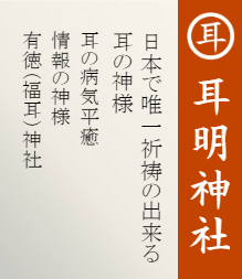 耳に明るいと書いて『みみご』、耳の神様として、全国的にも有名な神社です。