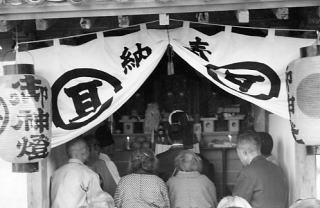 貝のサザエの形が、耳の形と良く似ているということで、サザエの貝の奉納をします。その中にお酒とお米を入れてお供えし、お願いすると良く叶えてくれると伝えられています。