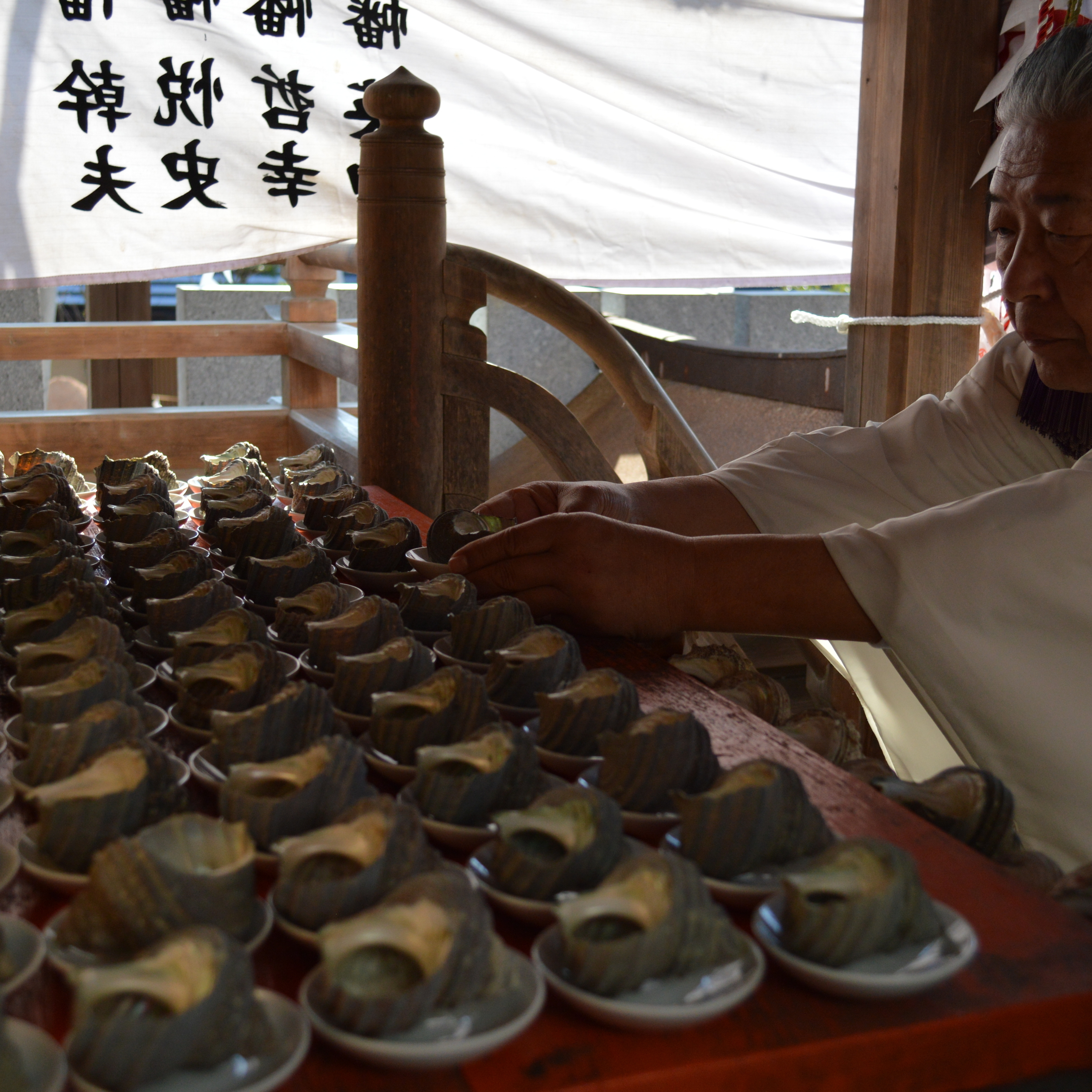 ※ご祈祷を受けて頂いた方に、サザエの奉納をお願いしております。また、お供えいただくサザエの貝およびお酒とお米は、神社でご準備させていただきます