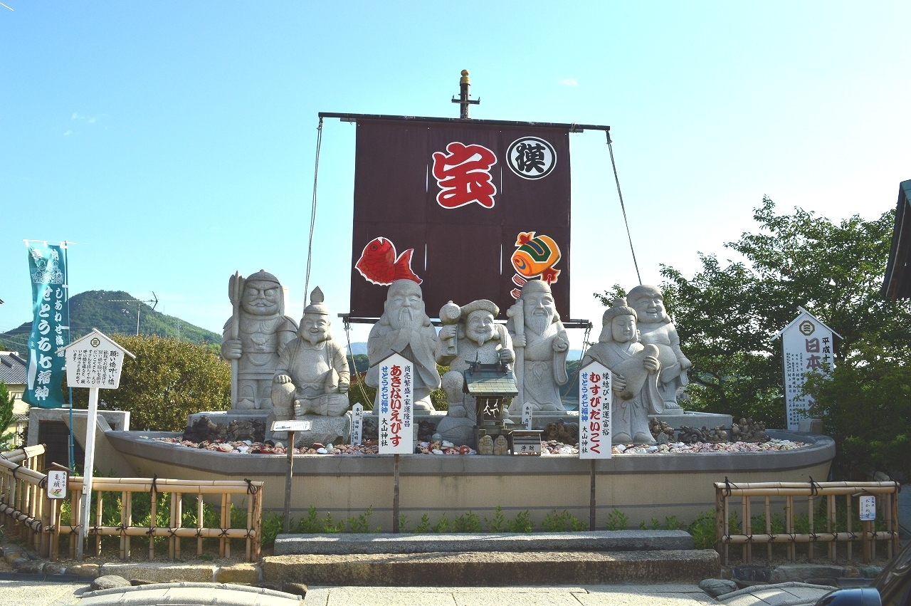 えびす大黒など石造七福神さんが、勢揃いした宝船。
